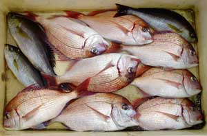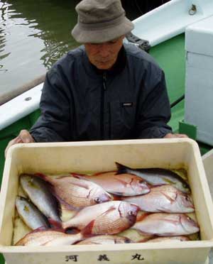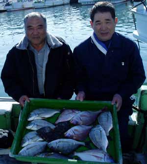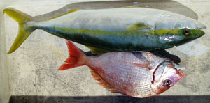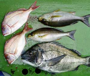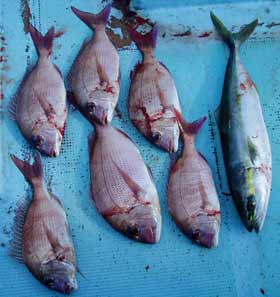 マダイ30〜40糎7匹、イサギ38糎2匹、