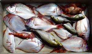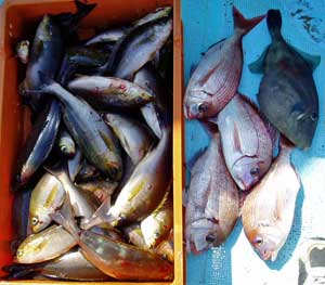 朝一番、良く釣れた、チダイ、ガシラ、イサギ、