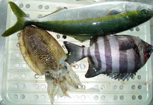 イサギ、マアジ、タイ、を辛うじて