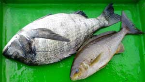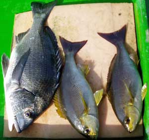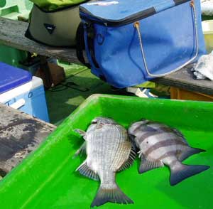 サンバソウ30糎1匹、チヌ48糎1匹、