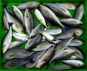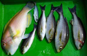ヒラアジ27〜40糎50匹、タカノハダイ50糎1匹、