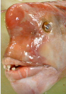 下がくはきょ歯状。頭部のうろこは小さい。眼隔域、吻、下がく、前さいがい骨縁辺にうろこはない。