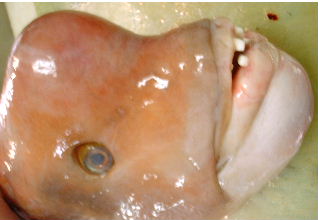 オスは成長に伴い額部が著しく突出し、大きなコブを作る。吻端はとがり、両がくは