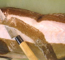 ウロコ剥きから3枚おろし、アラを小切りにするまで、ひとりで1時間半かかりました。(他の仕事もやりましたが。)