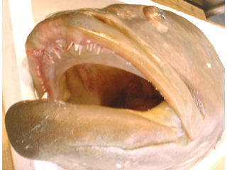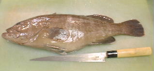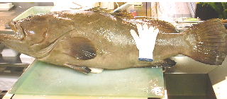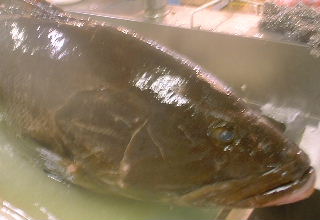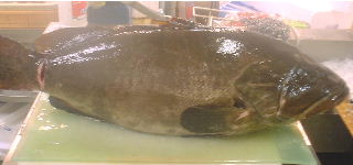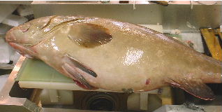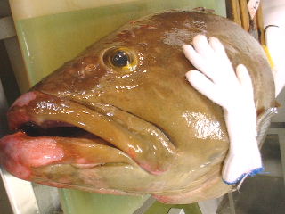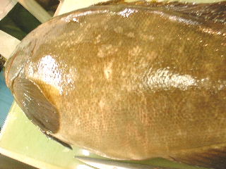 高知産、13kgのクエ。背中に奇形がみられます。たぶん、小さい時に傷を受けたまま