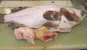 紀州産31キロの大物&特上です。 いつものまな板です。お腹パンパンですね〜