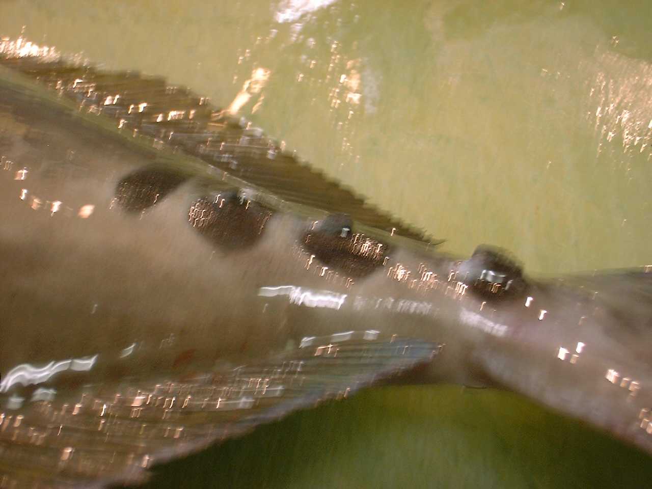 ↑尾柄(びへい)に黒色の大きな骨質板が4〜5個あり、後方のものには