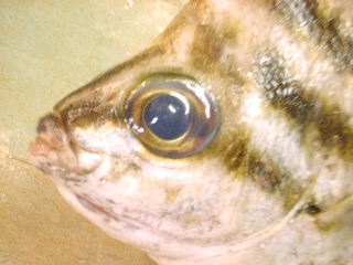 尾びれの後縁は丸い。胸びれ上方の体側に1個の青黒色斑がある。