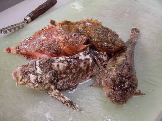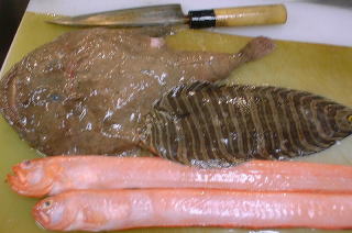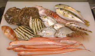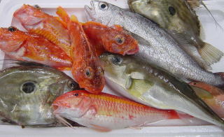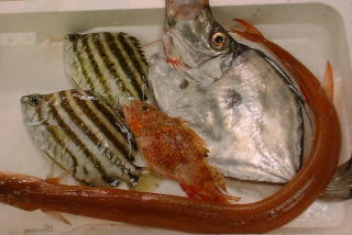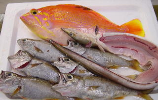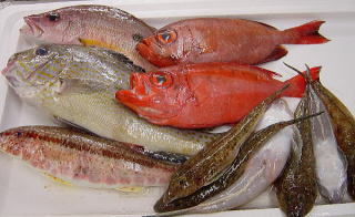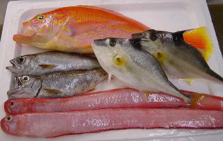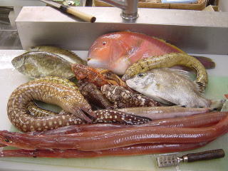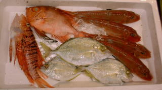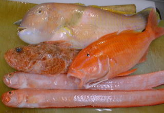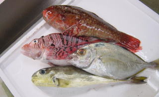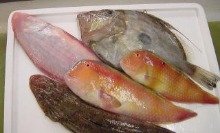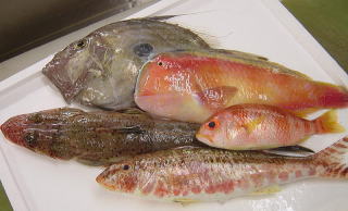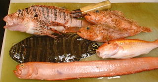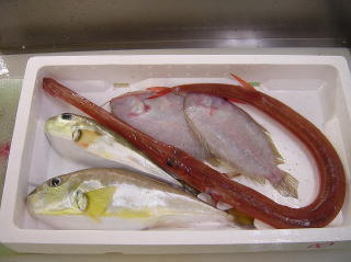 赤たち、黄びれはげ、黒かんぱち(切り身を3〜4切)、いら、底いとより