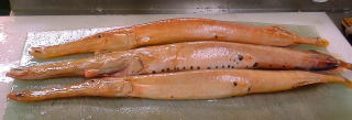 ←世界初?か、ナガタチカマスのお刺身の図(笑)