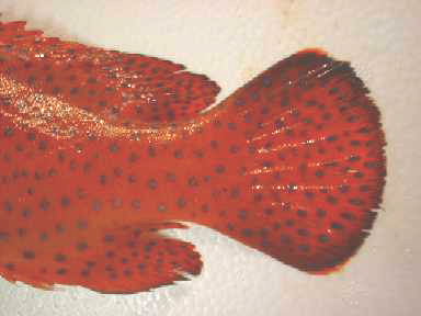ユカタハタ「ユカタハタ属」はた科 学名:Cephalopholis miniata(英)Bliespot