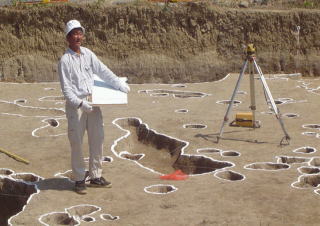 発掘現場責任者の和歌山県文化センターの「山本高照」先生 |