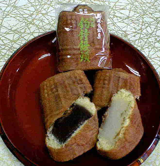 カステラ生地で、 中には白あん・黒あんが入ってます |