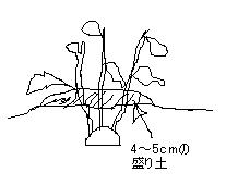 4〜5cmの暑さに盛りました。こうしておくと雨で肥料が流れることもなく、芋も大きくなり緑色の芋になりません。