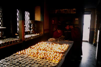 チベット人の子どものお坊さん達がけまりのようなことをして遊んでいた。何を蹴っているのかと近くに寄ってみると,それは輪ゴムを集めた物だった。修行僧といっても子ども。無邪気なものである。