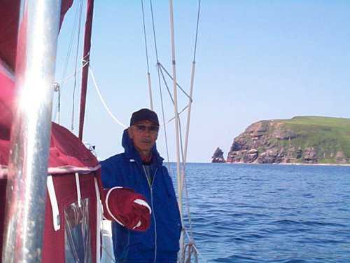 小樽7時出航曇り空の中を留萌に向かう、中々潮に乗れずエンジン回転2500では 艇速6ノットに落ちてしまう、2700に上げるも7ノット出ない、おまけに北の向かい風で寒い。やっと留萌に着くも海は汚れてビニールなど浮遊物多く、うねりがまともに入り一晩中横揺れ酷し。おまけに着岸早々港湾が停泊料1820円を徴収に来る。もう2度と来たくない港。明くる日は久しぶりの快晴のもと天売へ、波も無く風もそよ風最高のクルージング。オロロン鳥で有名な赤岩をまじかに見て、西側の奇岩や海鳥を観察しながらゆっくり島を回る、北側の黄黒の灯台から北西の延長線上にある無色の灯台迄は暗岩が多数あり航行不可能なので要注意、無事回って午後2時天売港に着く。木村さんの友達の三浦さんの海友丸に横着けさしてもらう。三浦さん宅でお風呂に入れてもらい、家内は洗濯までさしてもらう、車をお借りして島内一周、オロロン鳥の生息地、断崖絶壁を山頂から見る。飛んでいる鳥を上から眺めるのは異常な体験でした。 海の色はブルーで黒い岩白い砂とのコントラストが素晴らしい景観でした。夜は生雲丹の差し入れあり、熱いご飯に乗せて頂く。明日はたったの6マイル隣の焼尻に向かいます。