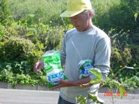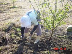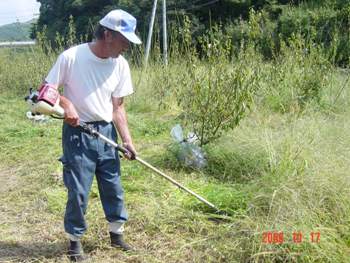 先日から、義父と義母は2年生の苗木の周りに生えている草を取り除いてくれています。