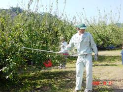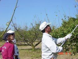 農家の畑を、お借りして2・3人のグループに別れて講師の先生が剪定の仕方を指導してくれました。