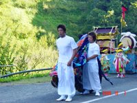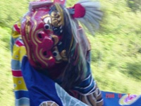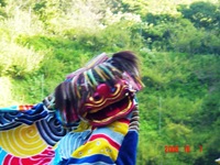 この獅子舞は2人の青年ががんばっていました。もちろん笛と太鼓もあります。