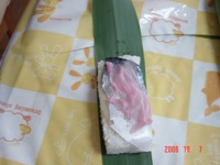 「笹寿司」・・川の近くにあるアセの葉で魚をつつんで木箱に入れて重しをして約ひと晩おいて