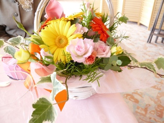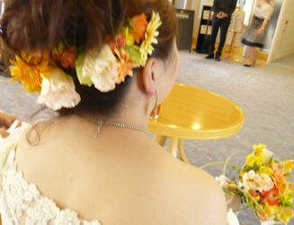 お式で使うブーケや髪飾り、各テーブルに置かれているお花も全部自分で作られたそうです。(スゴイ!!)