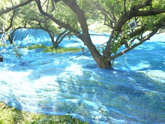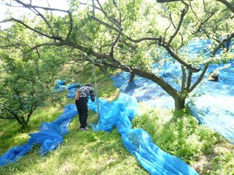 緑色の梅畑がこれからは、青くなって行きます。(ネットの色が青いので・・・(^Q^)/)