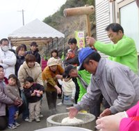 一緒に記念撮影デ〜ス 出来上がったお餅は来園者にプレゼント