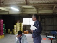 あいにくの雨だったので、梅倉で出している梅を見て頂き、その後倉庫で梅干を見てもらいました。