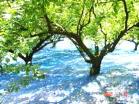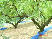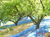 5月に敷き詰めたネット!!見上げても梅の木には梅の実一つ残っていません。。