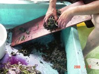 お昼からはてっちゃんにも手伝ってもらって、しそ揉み作業。。。。。