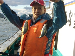 ![]() 野村氏 マアジ…23cm〜30cm 45匹 ガシラ…28cm〜32cm 2匹 |