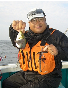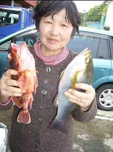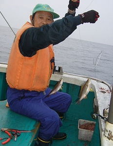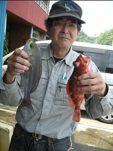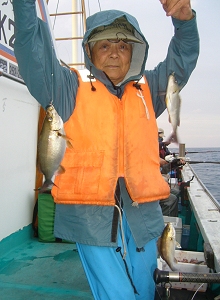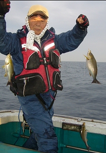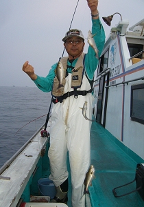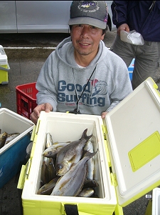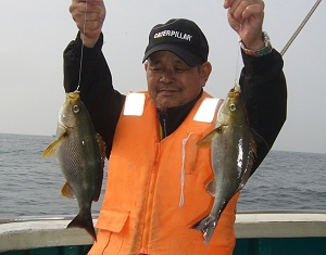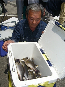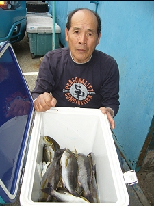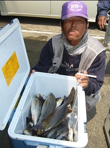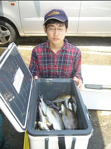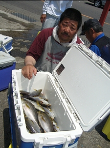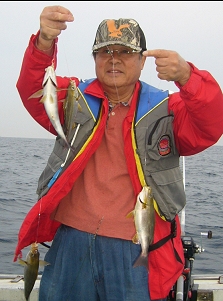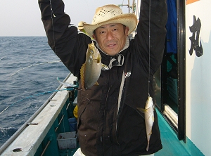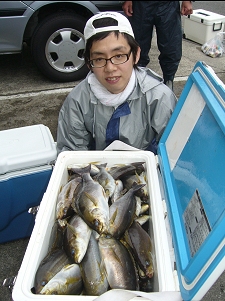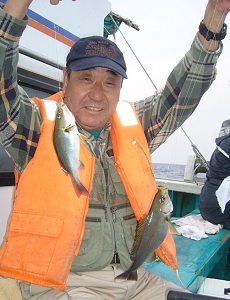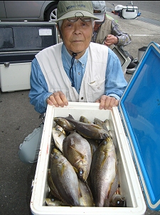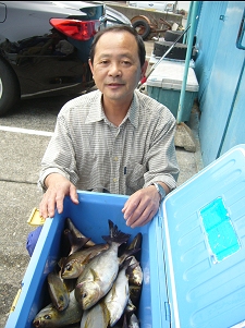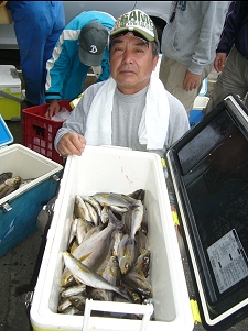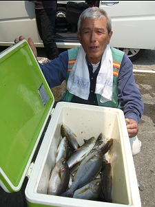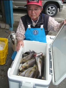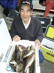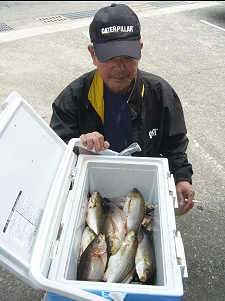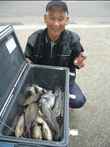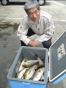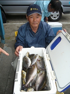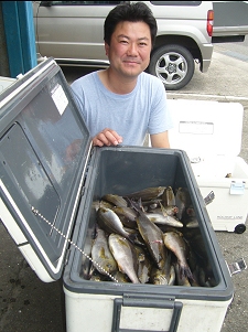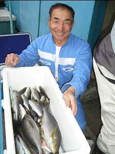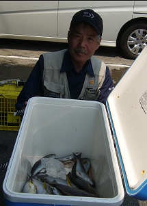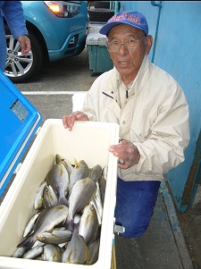 ![]() 村田氏 マアジ…22cm〜28cm 46匹 イサギ…25cm〜30cm 10匹 マダイ…37cm 1匹 |