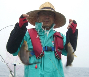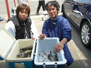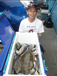 ![]() 江口氏ら2人 ヒラメ…42.5cm 1枚 イサギ…23cm〜37cm 130匹 |