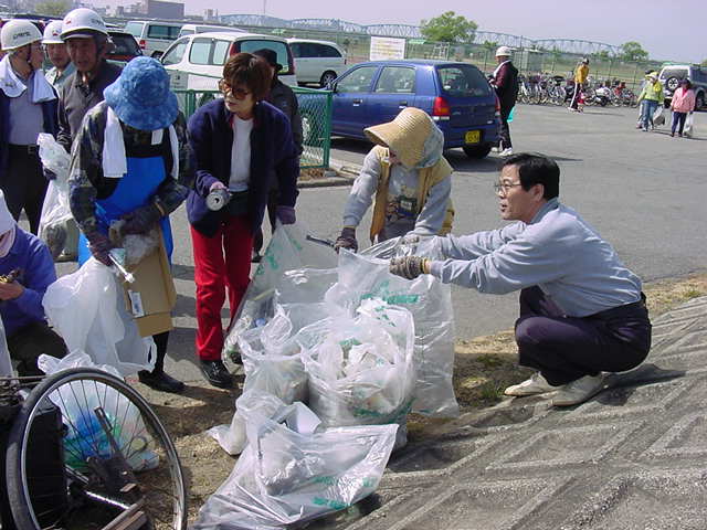 4月14日の日曜日朝9時から、1時間余り和歌山第二支部(支部長・中橋龍太郎和歌山市会議員)有志による、和歌山市福島・紀ノ川スポーツ広場のクリーン作戦を実施。(堤防下のゴミ、空き缶等集め)