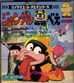 ジャングル黒べえ APM-4045「朝日ソノラマ」 1,ジャングル黒べえ 2,ウラウラタムタムベッカンコ 3,ドラマ「ウラ!ウラ!そうじはまかせて!」 黒人差別だと指摘され、封印されていた そうです。 |
