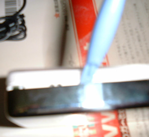 差し込んだカードで隙間が出来たところへ、ケースオープナーを入れる。 *カードを使わずケースオープナーだけではなかなか隙間が作れず差し込むことが出来ません。 ケースオープナーを使わずカードだけでこじ開けようとしても、カードを変形させてしまうだけと思います。 |