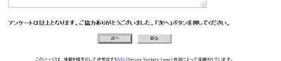 アンケートページでアンケートに答えてから、::アンケートは以上となります。ご協力ありがとうございました。「次へ」ボタンを押してください。 ::と書かれた下の「次へ」をクリック。 |