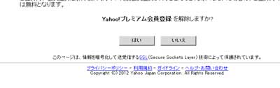 「Yahoo!プレミアム会員登録を解除しますか?」で、「はい」をクリック。 |
