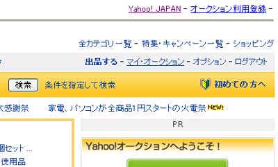 Yahoo!サイトにてログインし、オークションに移動。 |