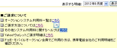 「Yahoo!オークション - マイ・オークション」ページが展開されるから、右上辺りの「ご利用明細」をクリック。 |