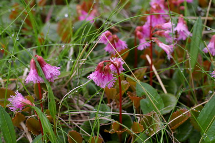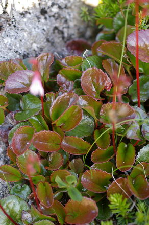 イワカガミという名は、岩場に多くて葉につやがあるところから鏡に見立てたもの。コイワカガミも葉に光沢がある。