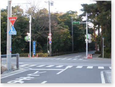 松洋中学校の生徒達の横断も多かったし、吉原側から出る時(左の写真)に右方向の車両等が見え難かったし、右の写真でご覧の通り直進の道路が少しずれていたので、信号が点くことによって、歩行者も車もかなり安心して通れそうです。