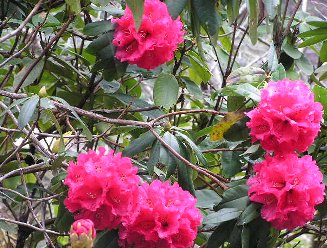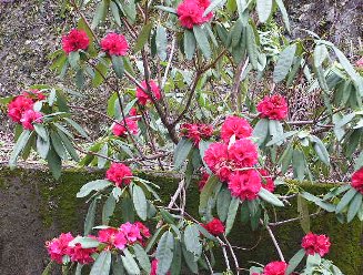 桜にはまだもう少し早く、しゃくなげは赤い色のものだけ咲きほこっていました。