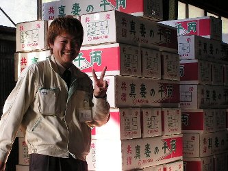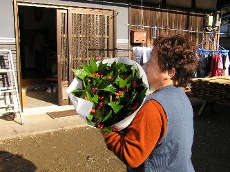 千両市に向けて 2004 JAの集荷場に集められた千両は、12月14日(徳島、白石)12月16日(梅田、なにわ、西日本、泉州)、12月19日(FAJ) など各市場に向けて出荷されます。この時期、真妻はどこもかしこも千両でいっぱいになります。