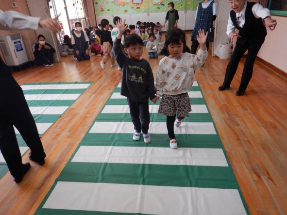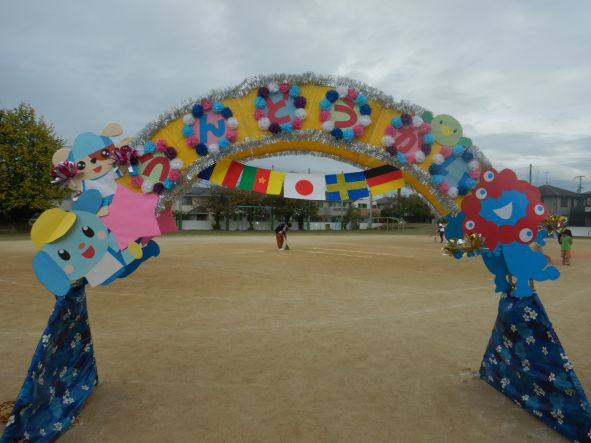 きく組、ばら組、ゆり組で「東京ブギウギ」を華やかに踊りました。 入場門も素敵でしょう。