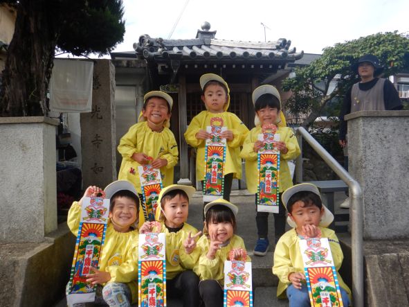 近くの善光寺へ七五三のお詣りにいきました。これまで健康を守ってくれたお礼とこれからも元気な賢い子になれるようお願いしました。