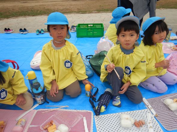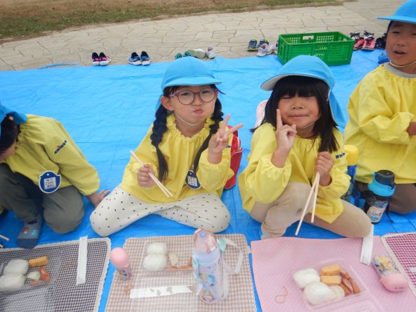 四季の郷公園についてすぐに園から運んでくれたお弁当を食べました。おむすびとてもおいしかった。