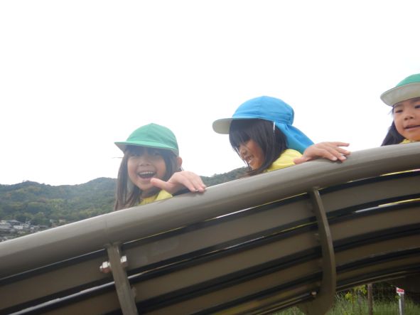 長い滑り台をスリルを感じながら滑った。 気持ちがいい!