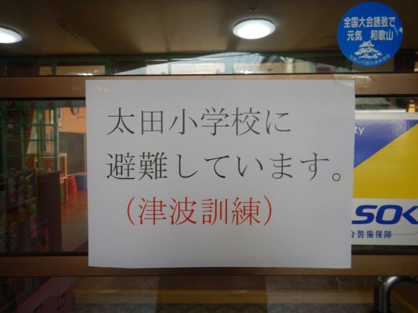 震度7の地震の後、津波警報がが出たことを想定し、避難場所の太田小学校に走って避難しにいきました。