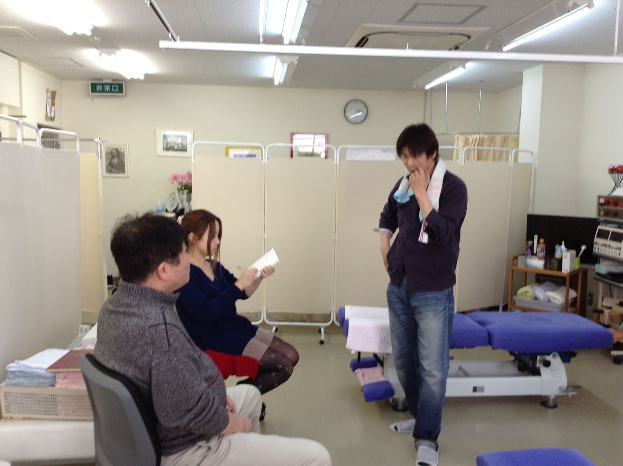 先ず、不調症状の出ていた私に対してどこがどうなっているのかを全員で確認。どう施術するかをカンファレンス。